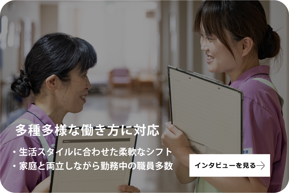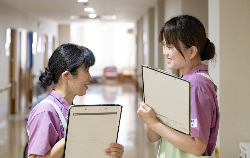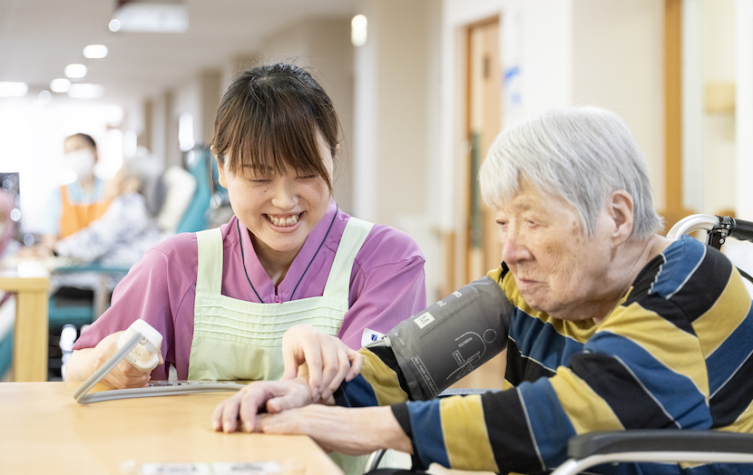 入居者様の居室へ出向き、声掛けを行い一緒に食堂へ。昼食をよりおいしく食べていただくため、昼食前の体操を実施して、食事の配膳・介助をします。 午後からは入居者様に体を動かしていただくため、様々なレクリエーションを行います。
